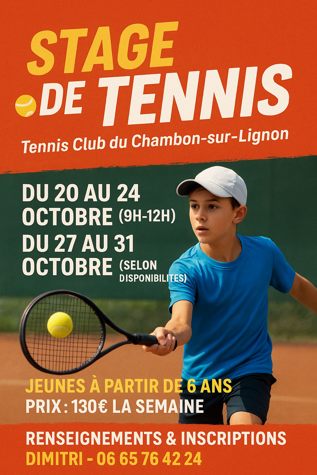 Stage de tennis jeunes du 20/10 au 24/10 et du 27/10 au 31/10 2025